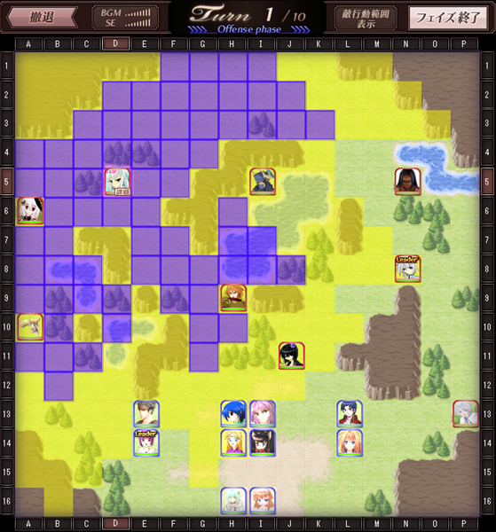 1ターン攻略をあきらめる場合は、自軍をいったん安全地帯~敵の攻撃の範囲外~に移動する必要があります。そうしなければ甚大な被害を受けるでしょう。